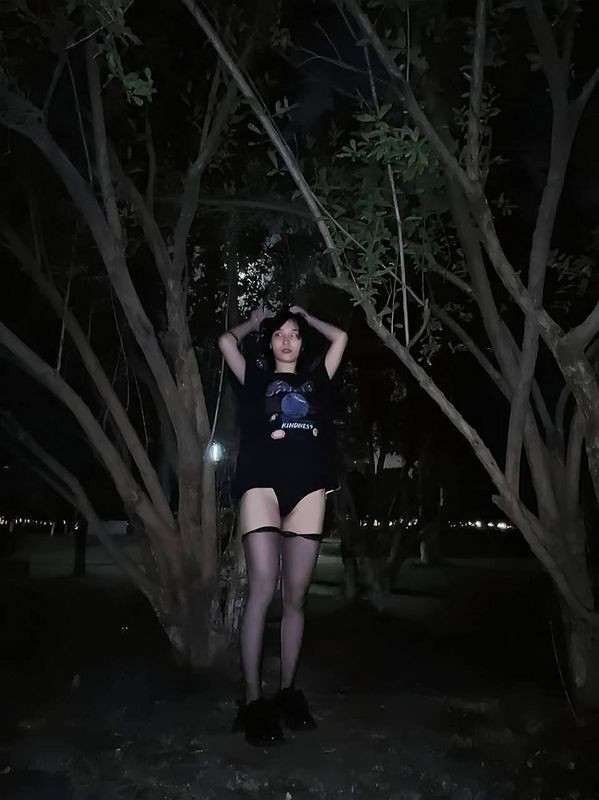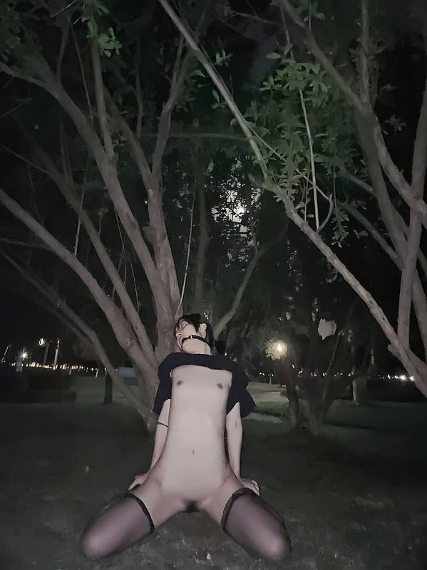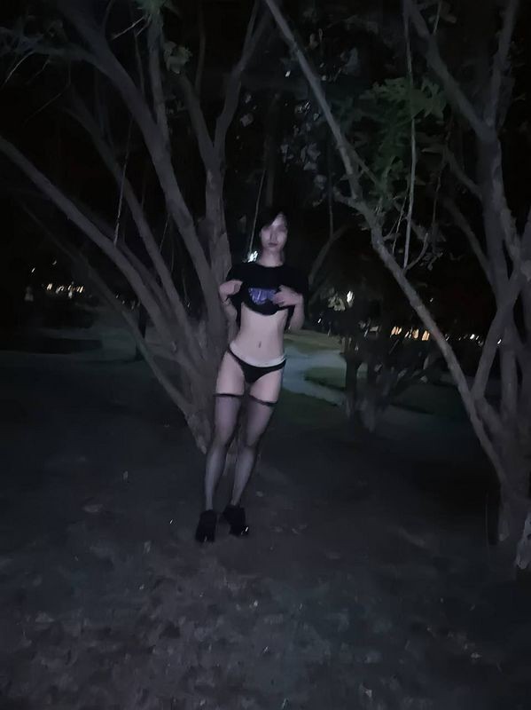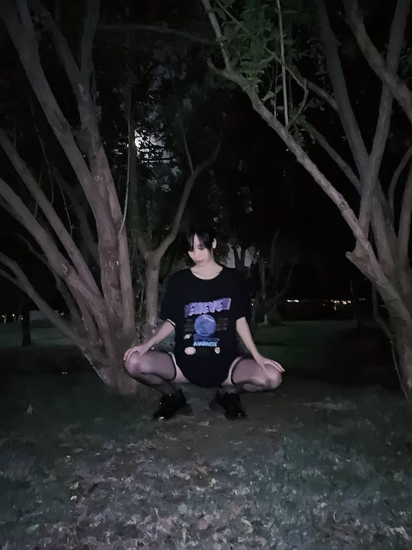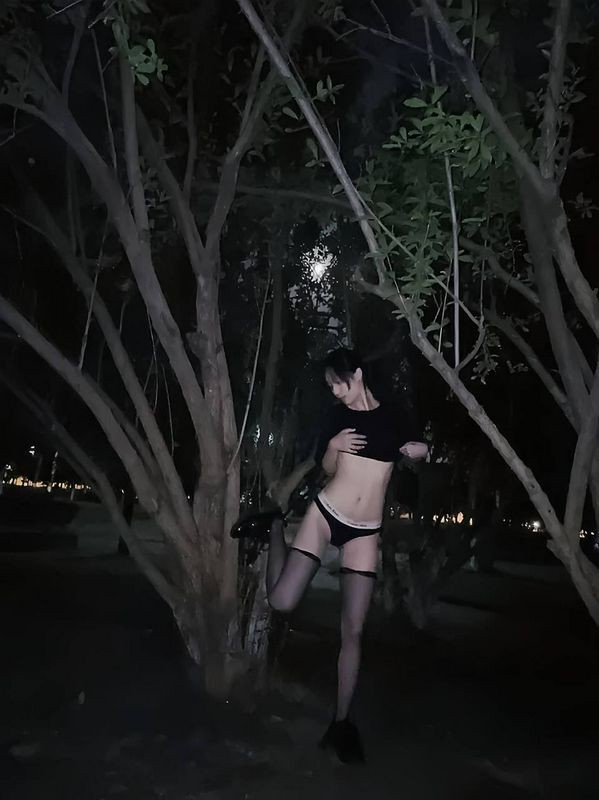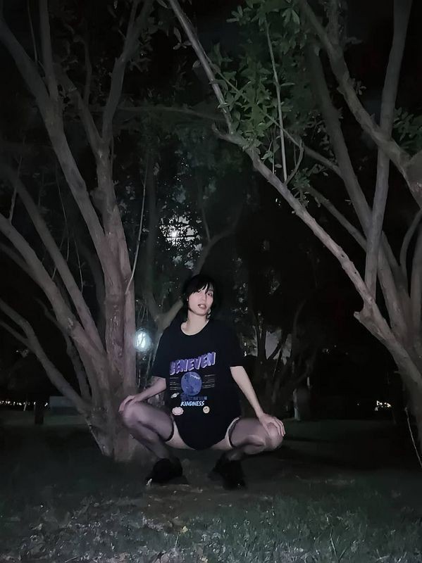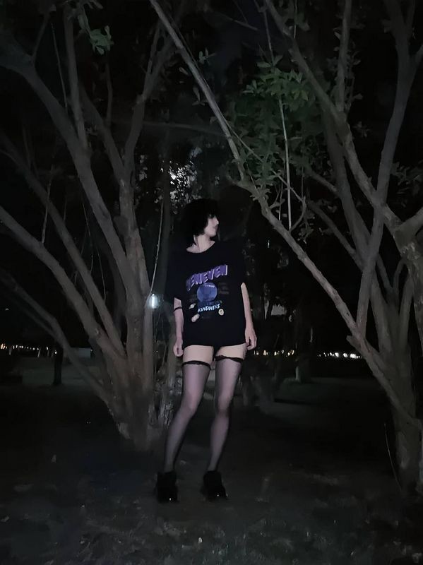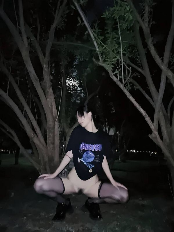 夜晚小树林里露出